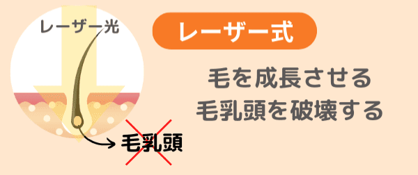 - 狭い範囲に高出力のレーザーを照射し、毛根を直接破壊する方式。