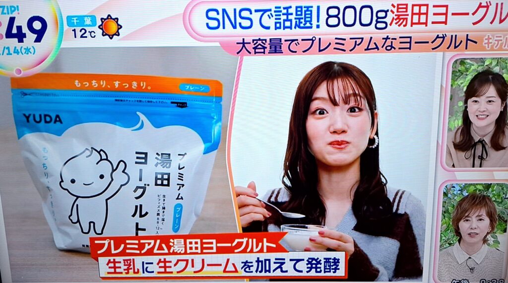 - ZIP!キテルネ級トレンド商品として紹介期待値高く、SNS映えするもっちりビジュアルでインスタ投稿向き、ヨーグルトマニアやスイーツ好きの新定番探しに即戦力。