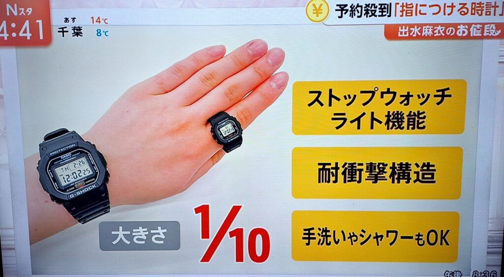 2026年2月26日放送のTBS「Nスタ」人気コーナー「出水麻衣のお値段」でも、税込1万4300円の“指時計”が即完売&抽選になるほどの注目アイテムとして紹介されました。