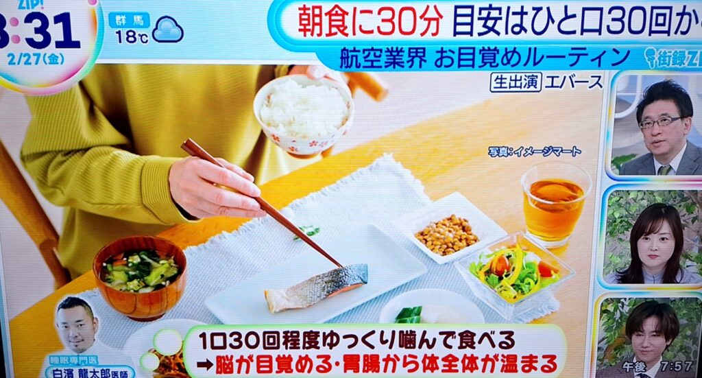 朝ごはんは30分かけてゆっくりゆっくり食べることにしてると話されていました。